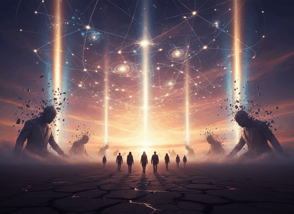 - 私たちの“中”が裂かれ、まとまり(統合)を失った――これが苦しみの根っこだ、という見方です。分断されるほど、私たちは自分の本当の力や記憶(光の出自)を思い出しにくくなります。