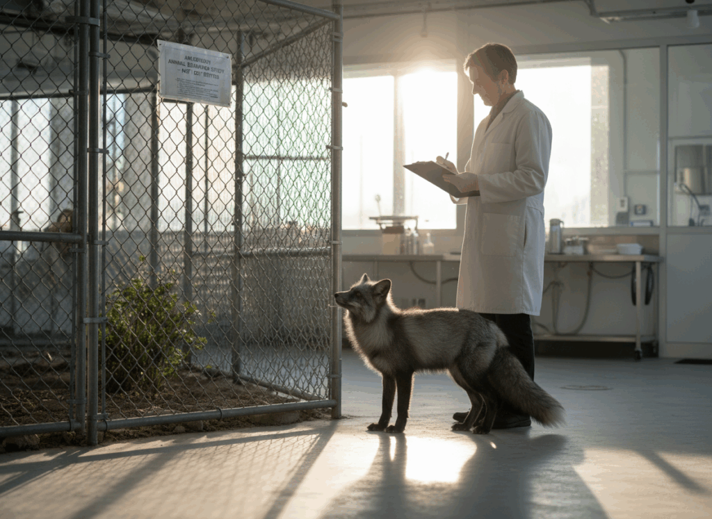 家畜化の仕組みを調べるために、遺伝学者ベレヤエフはキツネを使った長期実験を行いました。方法はシンプルで、人にやさしく近寄ってくる個体だけを次の世代の親に選ぶ、それを繰り返す、というものです。訓練はせず、生まれつきの性質だけを選びました。