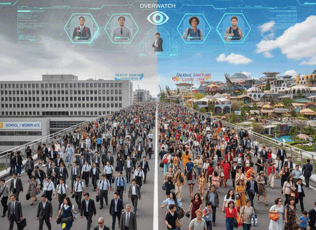現代では、法律・教育・テクノロジー・文化がその流れをさらに後押ししています。学校では秩序とルールが身につき、都市では監視カメラやデータ管理が広がり、SNSには「これが正しい」という空気が生まれます。これらは良い面として安全と協力を高めますが、同時に自発性や野性味、直感や情熱を弱める副作用もあり得ます。