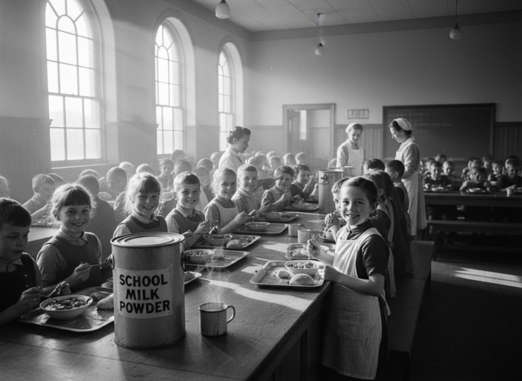 戦後の日本は子どもの栄養不足が深刻で、学校給食は制度化され、当時の給食に小麦粉・脱脂粉乳などが関わった。これは政府・文科省の説明と整合します。